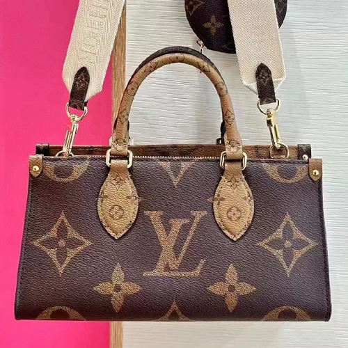 루이 비통 온더고 이스트 웨스트 토트백은 브랜드의 상징적인 온더고 라인을 새롭게 재해석한 모델입니다. 자이언트 모노그램과 모노그램 리버스 캔버스가 조화롭게 어우러져 시각적인 대비와 함께 현대적인 매력을 선사합니다. 이스트 웨스트 형태의 넉넉한 수납공간은 일상 필수품을 보관하기에 이상적입니다.