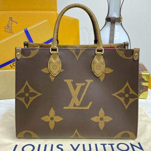루이 비통 온더고 MM 토트백은 클래식한 모노그램 캔버스와 모노그램 리버스 캔버스를 양면에 배치하여 대담하고 현대적인 디자인을 선보입니다. 넉넉한 수납공간을 자랑하며, 일상 필수품을 여유롭게 보관할 수 있어 실용성이 뛰어납니다.