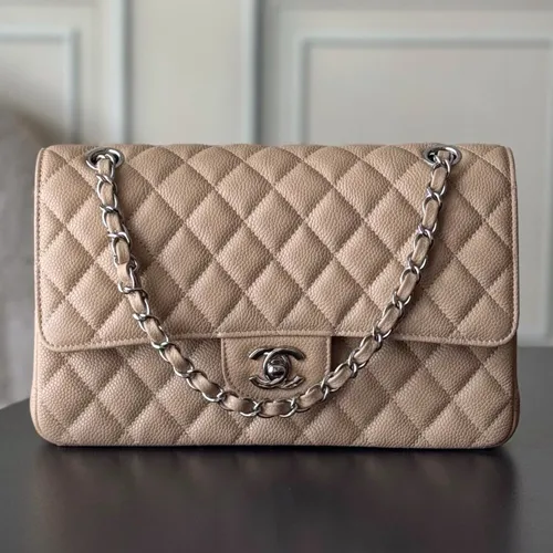 Chanel 샤넬 클래식 플랩백 CF 1112 베이지 Haas 캐비어 카프스킨 (업그레이드 버전)은장