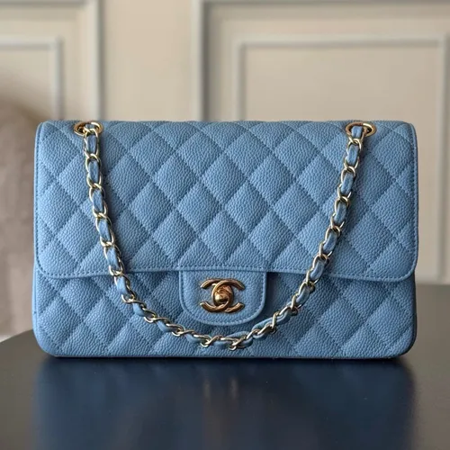 Chanel 샤넬 클래식 플랩백 CF 1112 파스텔블루 Haas 캐비어 카프스킨 (업그레이드 버전)금장