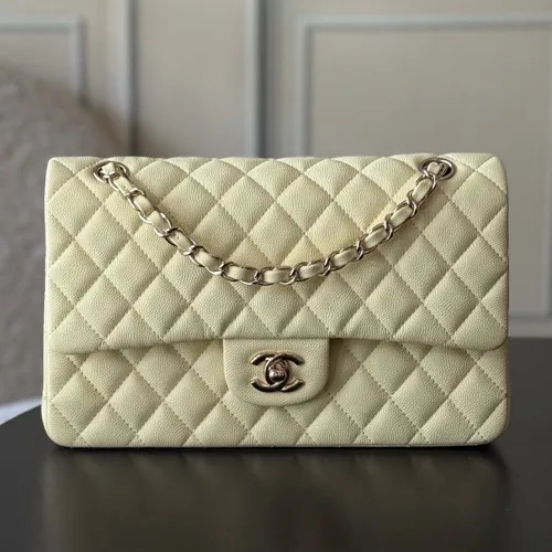 Chanel 샤넬 클래식 플랩백 CF 1112 라임옐로우 Haas 캐비어 카프스킨 (업그레이드 버전)금장