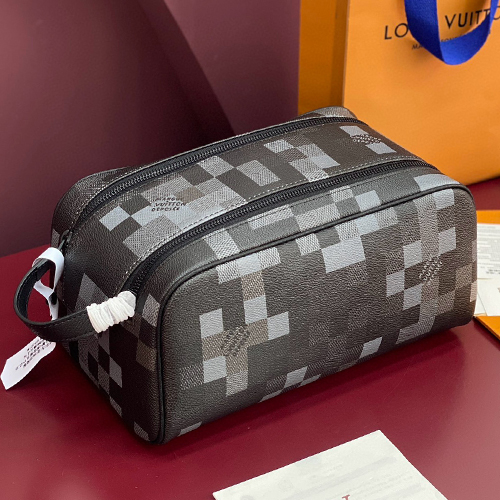 이번 시즌 신상 DOPP KIT 세면 가방으로, 본품 Dopp Kit은 깊은 Damoflage Black 캔버스 소재를 매치하여 가죽 장식, 릴리스 가능한 지퍼 및 가죽 손잡이로 빠르고 편리하게 세면 도구를 넣고 꺼낼 수 있습니다.