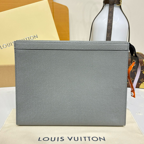 루이 비통의 포쉐트 보야주는 깊이 염색된 타이거(Taiga) 가죽으로 제작되어 세련되고 절제된 매력을 선사하는 클러치입니다. 견고하면서도 고급스러운 그레이 컬러의 타이거 가죽은 특유의 섬세한 십자형 그레인(cross-grain) 질감으로 시각적인 깊이와 뛰어난 촉감을 제공하며, 시간이 지날수록 더욱 멋스러운 에이징을 기대할 수 있습니다. 이 제품은 단순한 파우치를 넘어 다양한 스타일링과 활용이 가능한 아이템입니다.