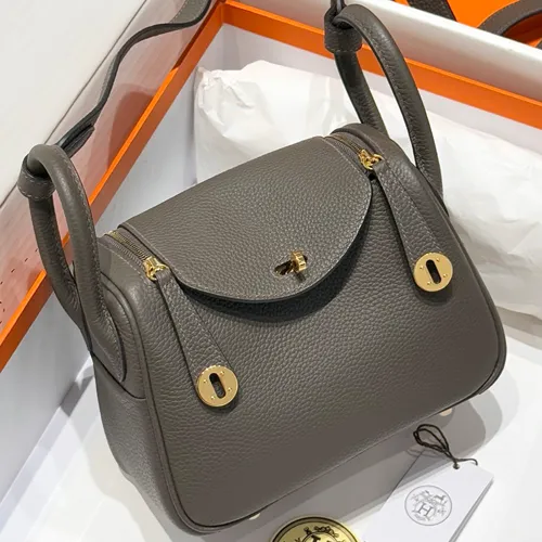 Hermes 에르메스 미니 린디 19 클레망스가죽 다크 카키그레이 금장