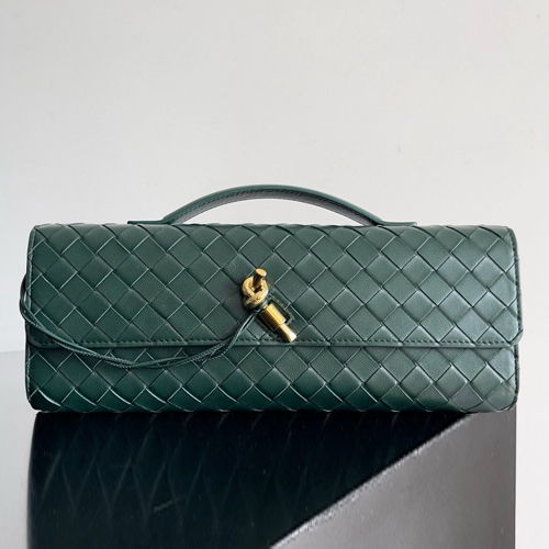 Bottega Veneta Andiamo 이브닝 클러치는 브랜드의 시그니처 인트레치아토 위빙(Intercciato Weaving) 디자인으로 제작된 고급 가죽 클러치백입니다.