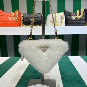 Prada 프라다 2023 시어링 사피아노 트라이앵글 미니 파우치 15cm (3색) (11월)