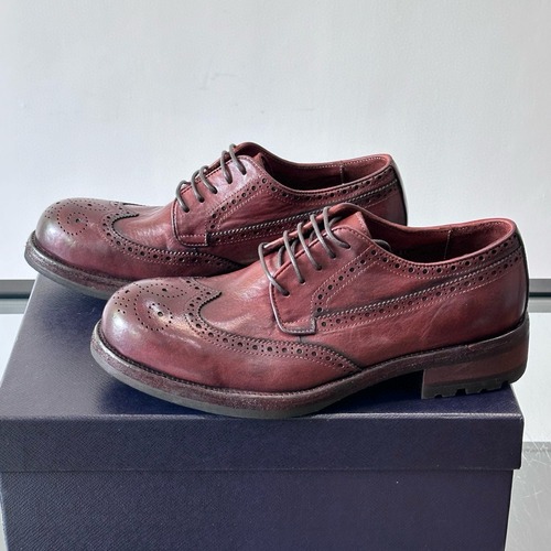 Prada 프라다 남성 워시드 홀스레더 수제 브로그 클래식 슈즈