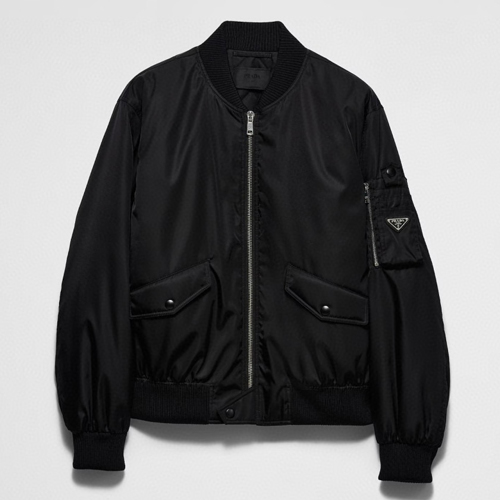 이 보머 재킷은 부드럽고 볼륨감 있는 디자인과 기능적인 디테일을 특징으로 합니다. 숄더 부분에는 에나멜 삼각 로고가 장식되어 있습니다.