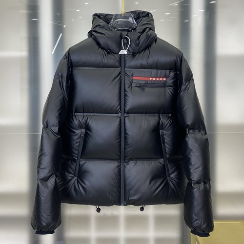 Prada 프라다 블랙 테크 프레스 다운 패딩자켓 (90구스 충전 고급 버전)
