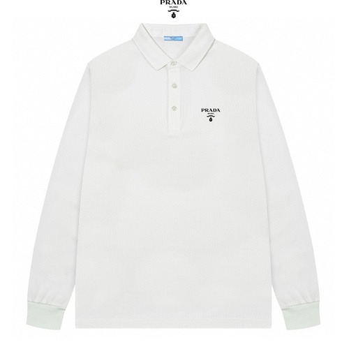 프라다 남성 코튼 롱슬리브 폴로 셔츠입니다. 가볍고 우아한 라인을 강조하며, 가슴 부분의 프라다 로고가 특징입니다. 고급스러운 소재와 편안한 착용감을 제공하며, 비즈니스 캐주얼룩에 적합합니다.