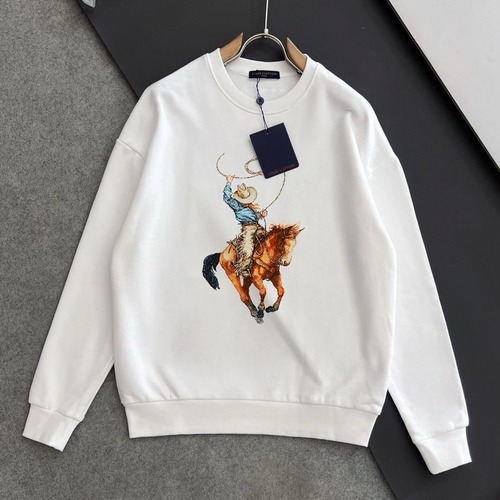 루이비통에서 출시된 카우보이 프린팅 맨투맨입니다. 410g 코튼 소재로 제작되어 부드러운 촉감과 편안한 착용감을 제공합니다.
