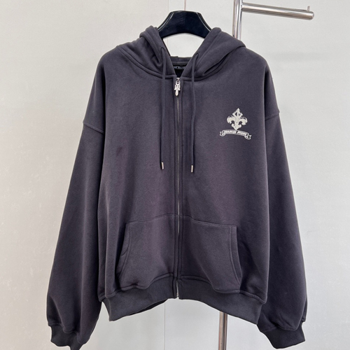 크롬하츠의 십자가 문양과 로고가 돋보이는 후드 집업입니다. 편안한 착용감과 트렌디한 디자인으로 데일리룩에 활용하기 좋습니다.