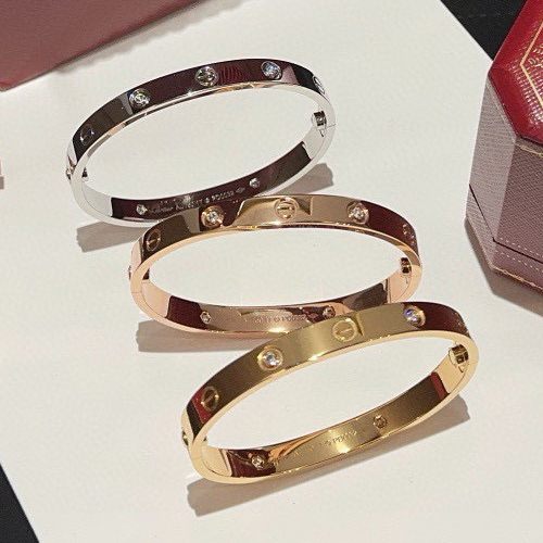 까르띠에 클래식 러브 브레이슬릿은 18K 금 소재와 다이아몬드로 제작되었습니다.