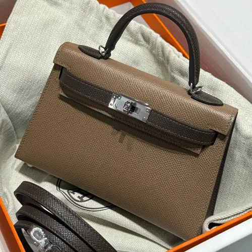 Hermes Kelly 미니 켈리 2세대 앱솜가죽 19cm 카키브라운 다크브라운