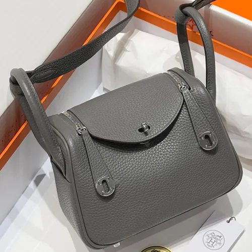 Hermes 에르메스 미니 린디 19 클레망스가죽 그레이 은장