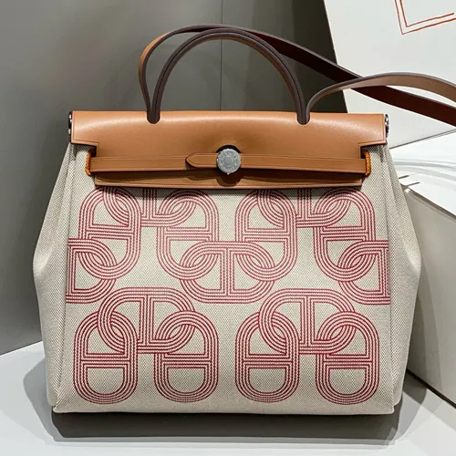 Hermes 에르메스 미니에르 허백 Zip 31CM 베이지 & 버건디 은장