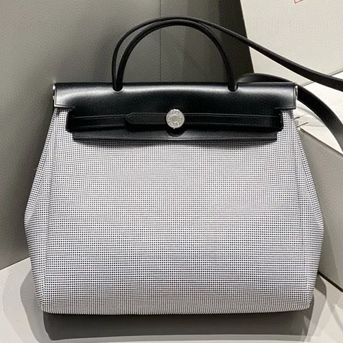 Hermes 에르메스 미니에르 허백 Zip 31CM 블랙 & 그레이 은장