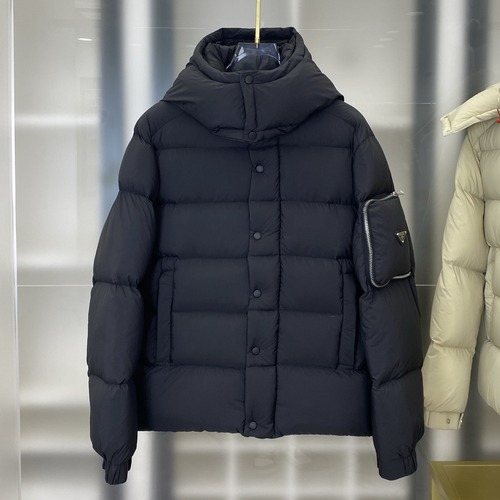 Prada 프라다 블랙 테크 프레스 다운 패딩자켓 (90구스 충전 고급 버전)