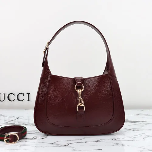 GUCCI 구찌 로소 앙코라 레더 재키 미디엄 숄더백 링클 버건디