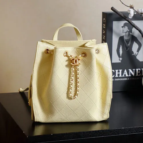 Chanel 샤넬 25B 25 캐비어 미디엄 백팩 옐로우 AS5600