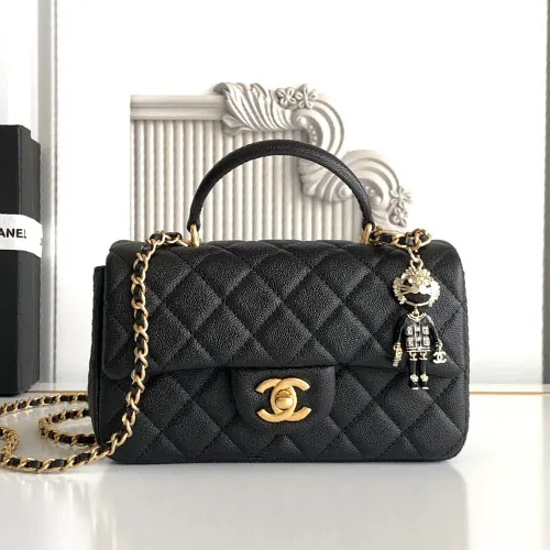 샤넬 CF 뉴미니 캐비어 내장칩 탑핸들 블랙 금장참 20CM #AS2431