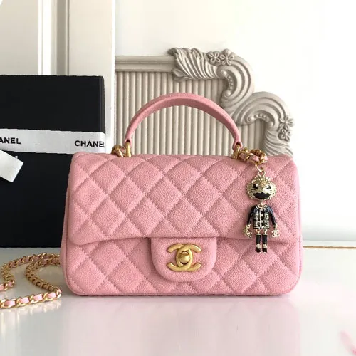 샤넬 CF 뉴미니 캐비어 내장칩 탑핸들 핑크 금장참 20CM #AS2431