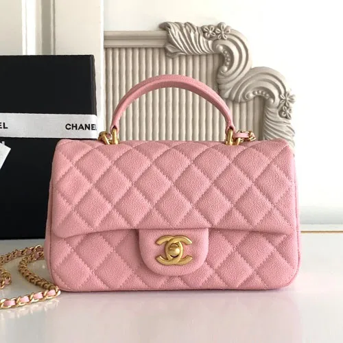 샤넬 CF 뉴미니 캐비어 내장칩 탑핸들 핑크 금장 20CM #AS2431