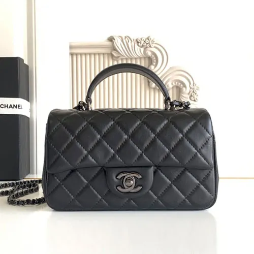샤넬 CF 뉴미니 램스킨 내장칩 탑핸들 블랙 메탈블랙 20CM #AS2431