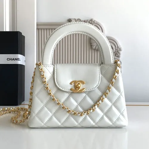 샤넬 실크 램스킨 켈리백 미니탑핸들 페이먼트화이트 19cm AS4416