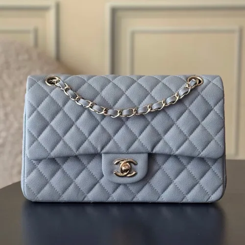Chanel 샤넬 클래식 플랩백 CF 1112 스모그블루 Haas 캐비어 카프스킨 (업그레이드 버전)금장