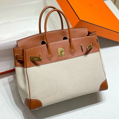 Hermes 에르메스 버킨 35 Swift 가죽 & 캔버스 빈티지 오렌지브라운 금장
