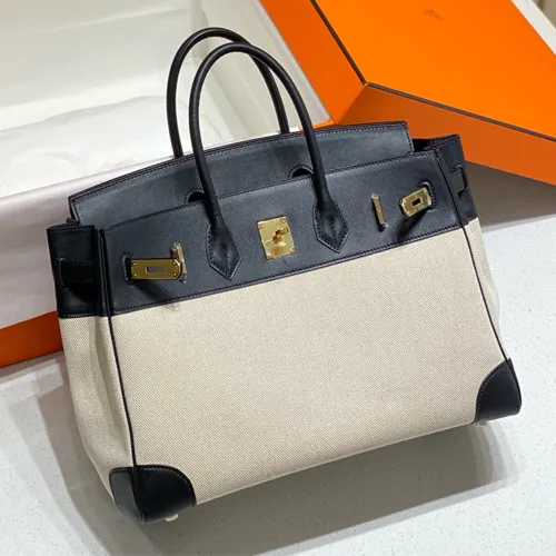 Hermes 에르메스 버킨 35 Swift 가죽 & 캔버스 빈티지 블랙 금장