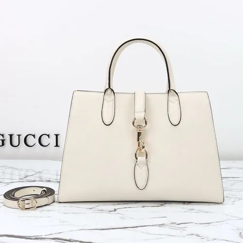 GUCCI 구찌 인터로킹 G 홀스빗 자카드 토트백 화이트 31CM