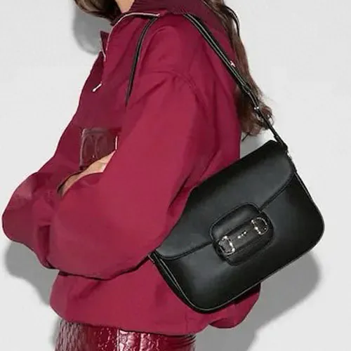 GUCCI 구찌 Horsebit 1955 소프트 미디엄 홀스빗 숄더백 블랙 26cm #815178