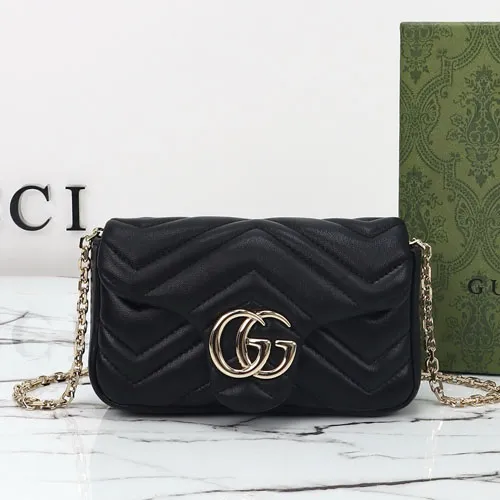 GUCCI 구찌 GG 마몬트 미니 체인 숄더 크로스백 블랙