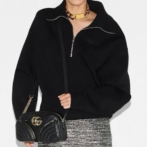 GUCCI GG 마르몽 스몰 포켓 디테일 숄더팩 블랙