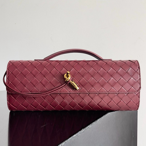 Bottega Veneta Andiamo 이브닝 클러치는 브랜드의 시그니처 인트레치아토 위빙(Intercciato Weaving) 디자인으로 제작된 고급 가죽 클러치백입니다.