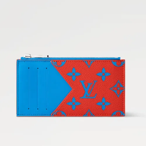 강렬한 컬러 대비와 아이코닉한 모노그램 패턴이 어우러진 Louis Vuitton Zipped Card Holder M14762. 레드와 블루의 생동감 넘치는 조합이 개성 있고 트렌디한 분위기를 연출하며, 슬림한 사이즈 속에 실용적인 수납력을 담아낸 제품입니다.
