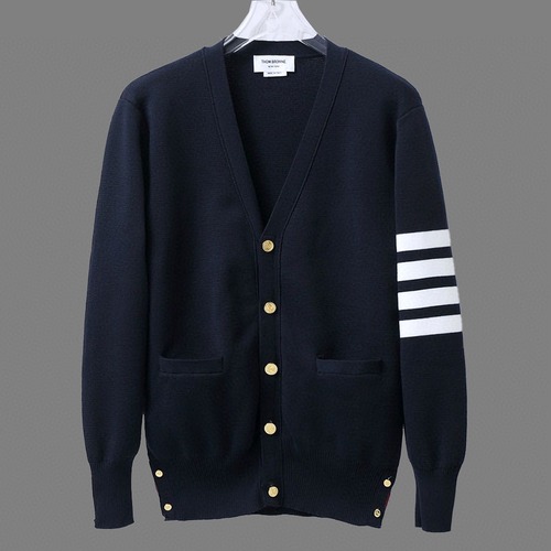 TB 브랜드의 대표적인 클래식 4선 브라스 버튼 가디건으로, 왼팔의 시그니처 4선 화이트 스트라이프 디테일과 고급스러운 황동(브라스) 버튼이 돋보이는 디자인입니다.