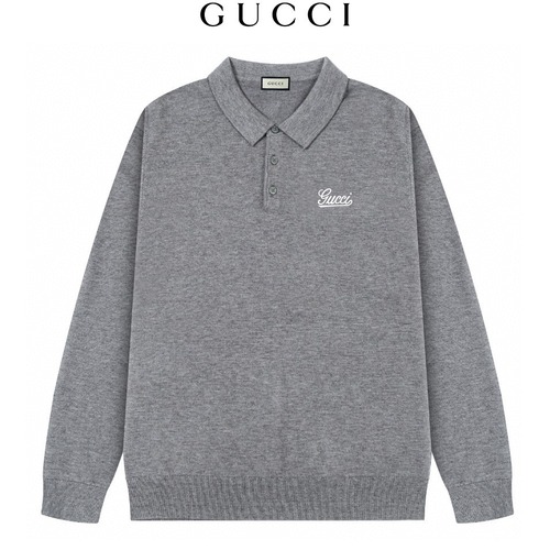 GUCCI의 2025 SS 시즌 최신 디자인으로, 폴로카라 형태의 캐시미어 니트 스웨터입니다.