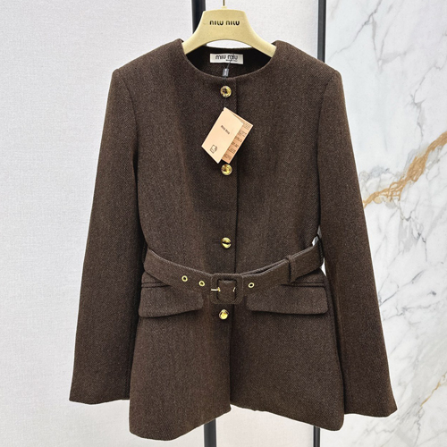 Miu Miu 미우미우 25Ss 가을겨울 신상 디자인 감성 울 혼방 원형 칼라 외투 410