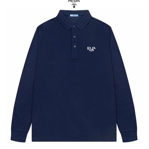 PRADA 프라다 남성 코튼 엠브로이더리 긴팔 폴로 셔츠