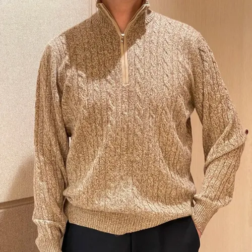 Loro Piana SS25 남성 하이넥 케이블 니트 스웨터 (브라운)