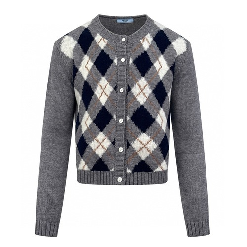 프라다의 자수 아가일 모직 가디건입니다. 부드러운 메리노 울 소재로 제작되어 편안한 착용감을 제공하며, 은은한 색감의 아가일 패턴이 특징입니다. 섬세한 자수 디테일이 돋보이며, 고급스러운 분위기를 연출합니다.