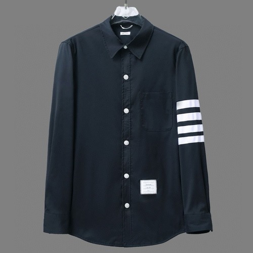 톰브라운의 시그니처 디자인인 4-Bar 디테일이 돋보이는 네이비 컬러 셔츠입니다. 소매 부분에 흰색 스트라이프가 포인트로 들어가 있으며, 깔끔한 디자인으로 다양한 스타일에 매치하기 좋습니다.