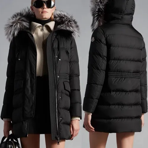몽클레어 Aphroti 시리즈 여성 롱패딩, 세련된 무광 블랙 원단과 고급스러운 핀란드 은여우 퍼 카라가 특징입니다. 허리 조임 스트링과 무릎까지 오는 롱 기장으로 보온성과 슬림한 핏을 동시에 제공합니다. 충전재는 90% 화이트 구스다운으로 가볍고 따뜻하며, 고급스러운 디테일과 브랜드 로고가 완벽한 완성도를 보여줍니다. 겨울철 스타일과 실용성을 모두 만족시키는 하이엔드 패딩입니다.