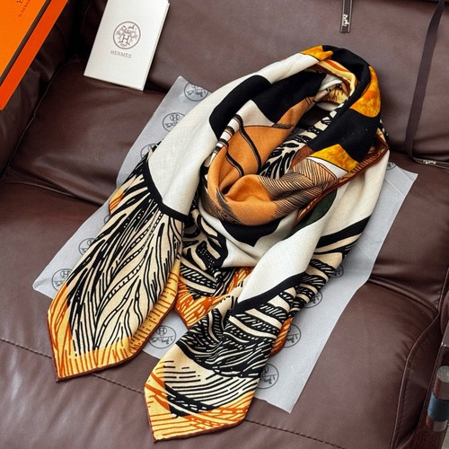 에르메스에서 출시된 스카프입니다. 70% 양모와 30% 실크 혼방 소재로 제작되어 부드러운 촉감과 고급스러운 광택을 자랑합니다. 독특한 패턴과 색감의 조화가 돋보이며, 다양한 스타일링에 포인트를 더할 수 있습니다.