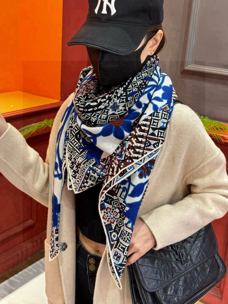 Hermès 에르메스 양모 캐시미어 스퀘어 스카프 140cm