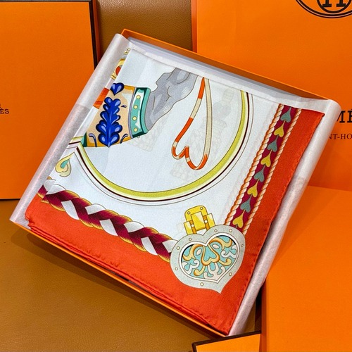 핸드롤 엣지(Hand Rolled Edge) 공정으로 제작되어 자연스러운 곡선 라인과 고급스러운 마감이 특징이며, 에르메스 특유의 예술적인 패턴이 풍부한 컬러감으로 표현되었습니다.