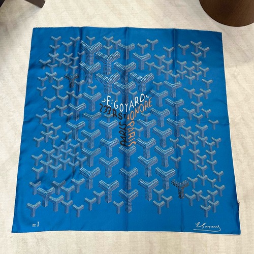 고야드에서 출시된 양면 스카프입니다. 선명한 블루 컬러 바탕에 고야드 특유의 패턴이 돋보입니다.
